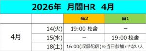 高校2年生 4月度 月間HR ※会員必須参加