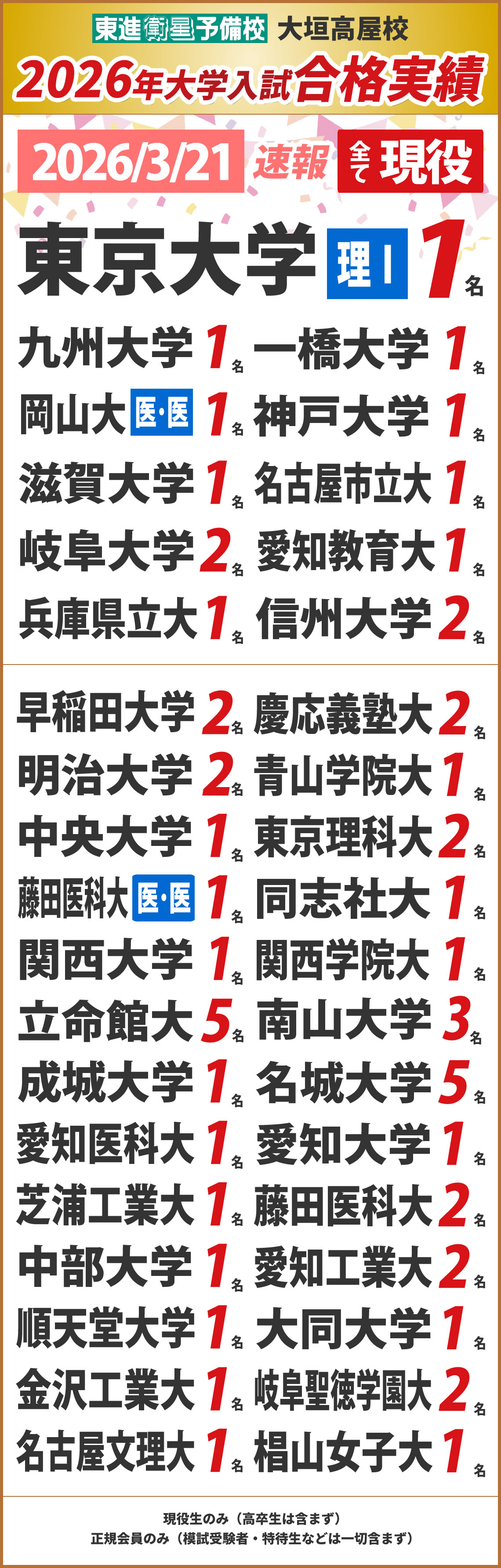 - ・合格実績の確定は3月31日を締め切りとする。4月1日以降に判明した合格者は計上しない。